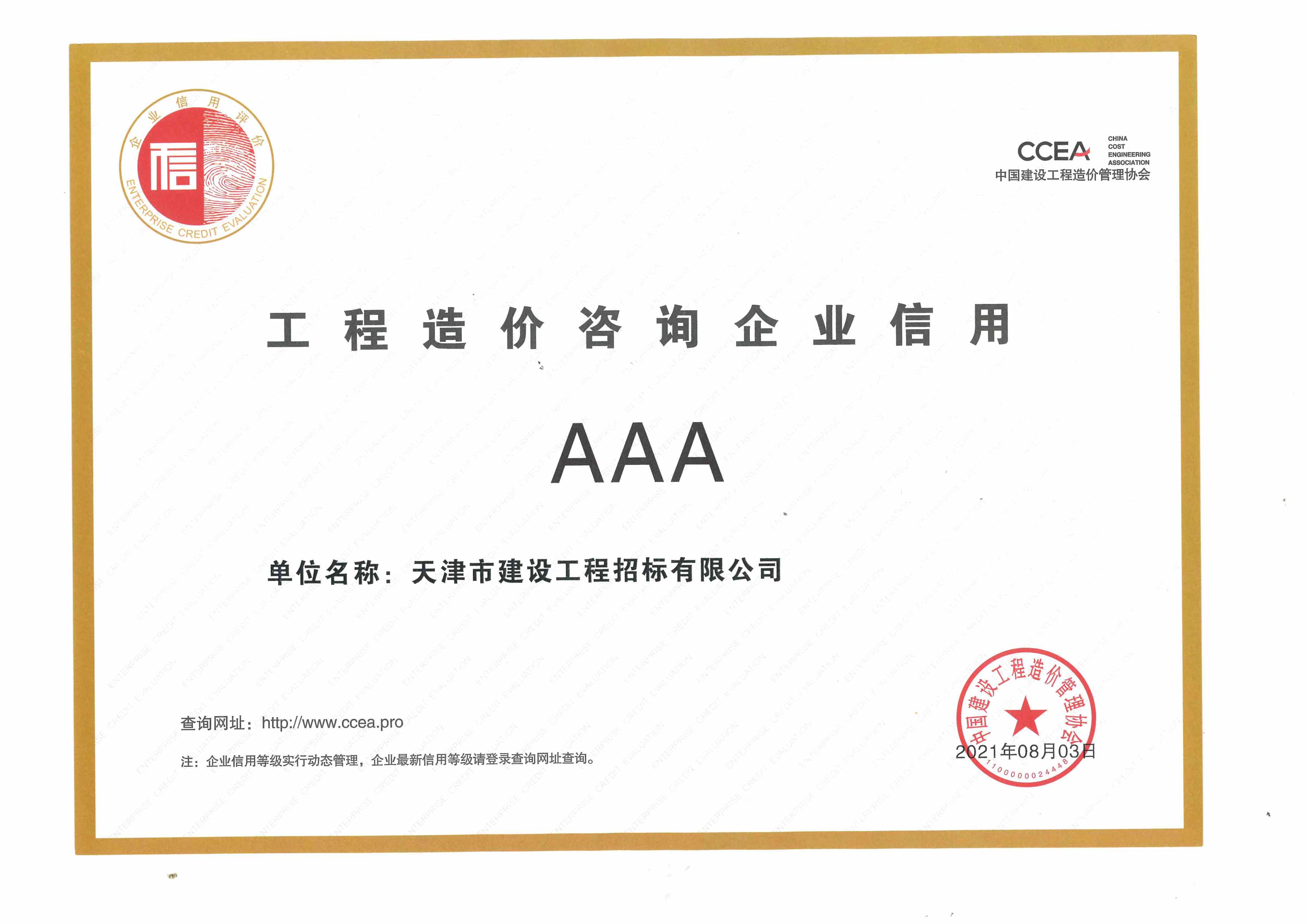 中價(jià)協(xié)AAA信用等級證書(shū)