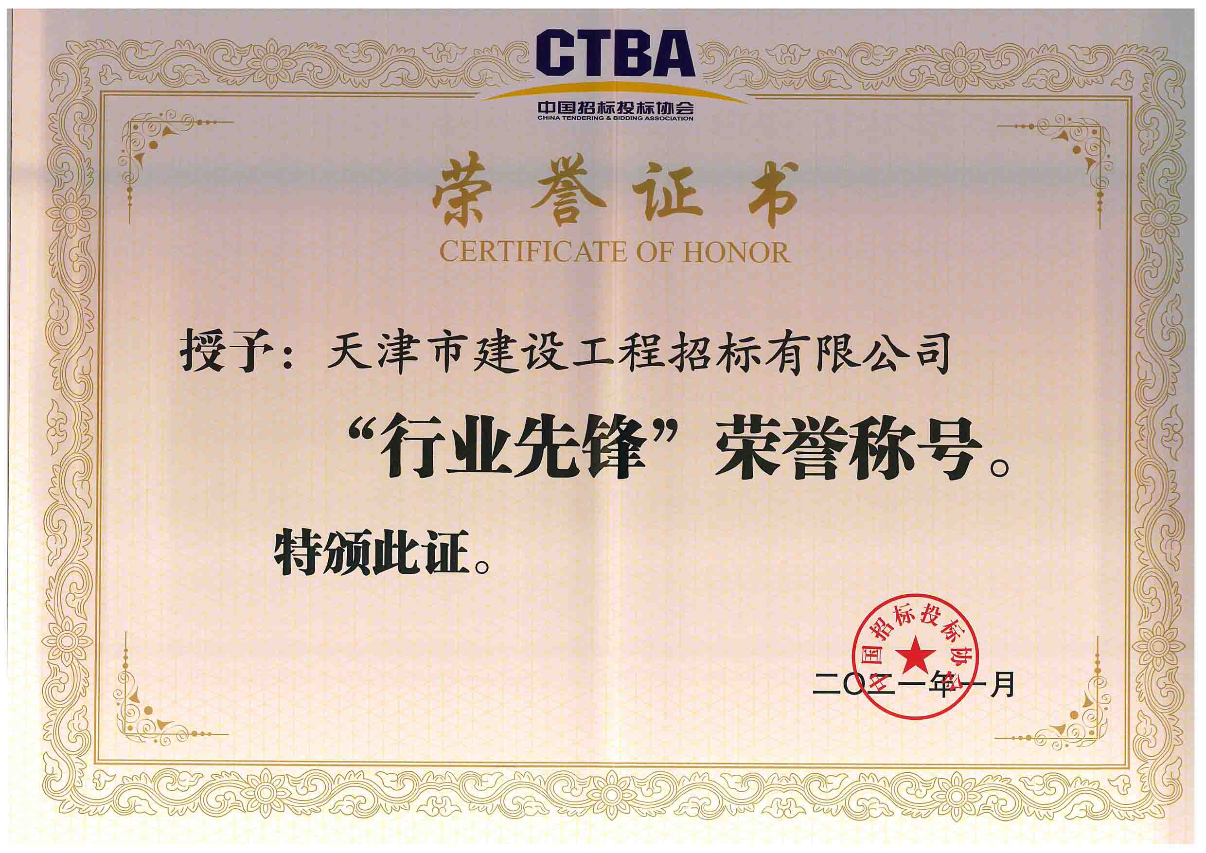 中國招投標協(xié)會(huì )“行業(yè)先鋒”榮譽(yù)